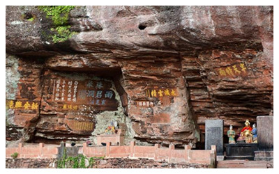 Another feature of the mountain is "Danxia landform" or "Danxia physiognomy", which is characterized by its red cliffed scarp. In Chinese dan means red, xia means the rays of sunup or sunset, and this mountain consists of terra-cotta rocks and purplish-red cliffs, it's typical of Danxia landform. Different from Mt.Huangshan of granite, Mt.Qiyun is a mixture of sandstone and conglomerate rock. Those sandstones and gravel rocks contain abundant iron that was strongly oxidized by the hot humid climate, as a result, laterite rocks are formed. This special landform is known as danxia. In the field of geology, Danxia landform is used as a geological term, this kind of land form was firt discoverd in Mt.Danxia of Guangdong Province, and Mt.Danxia has become the birthplace of the term "Danxia landform"(Danxia dimao).