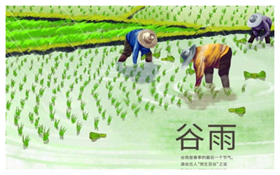 GrainRain (Chinese: 谷雨 gü yÛ),as the last term in spring, starts on April 20 and ends on May 5 Gra